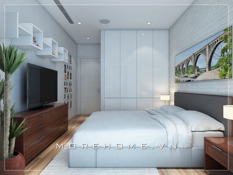 Với những phòng ngủ nhỏ của căn hộ chung cư lựa chọn nội thất hiện đại luôn được ưu tiên vì sự trẻ trung, năng động, thoáng đãng.