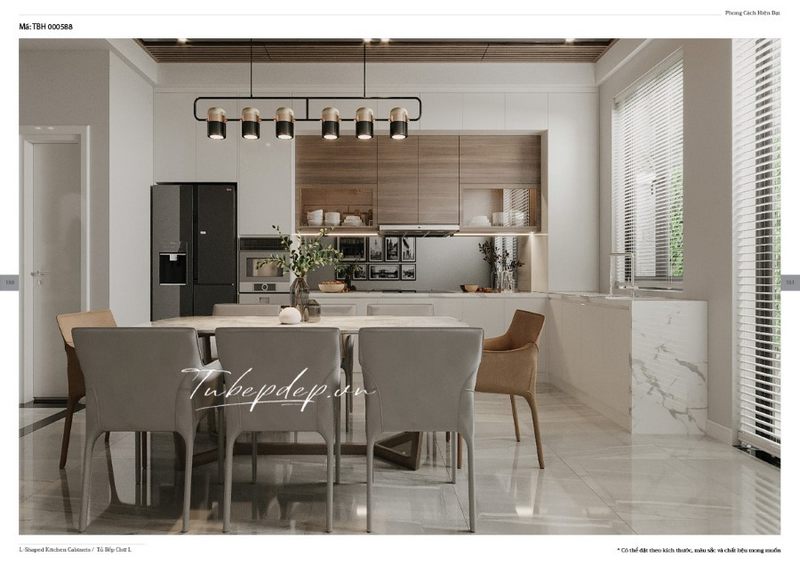 Mẫu tủ bếp chữ i có thiết kế đẹp và tiện nghi sẽ là nguồn cảm hứng để những người nội trợ trong gia đình bạn có thể nấu nướng.